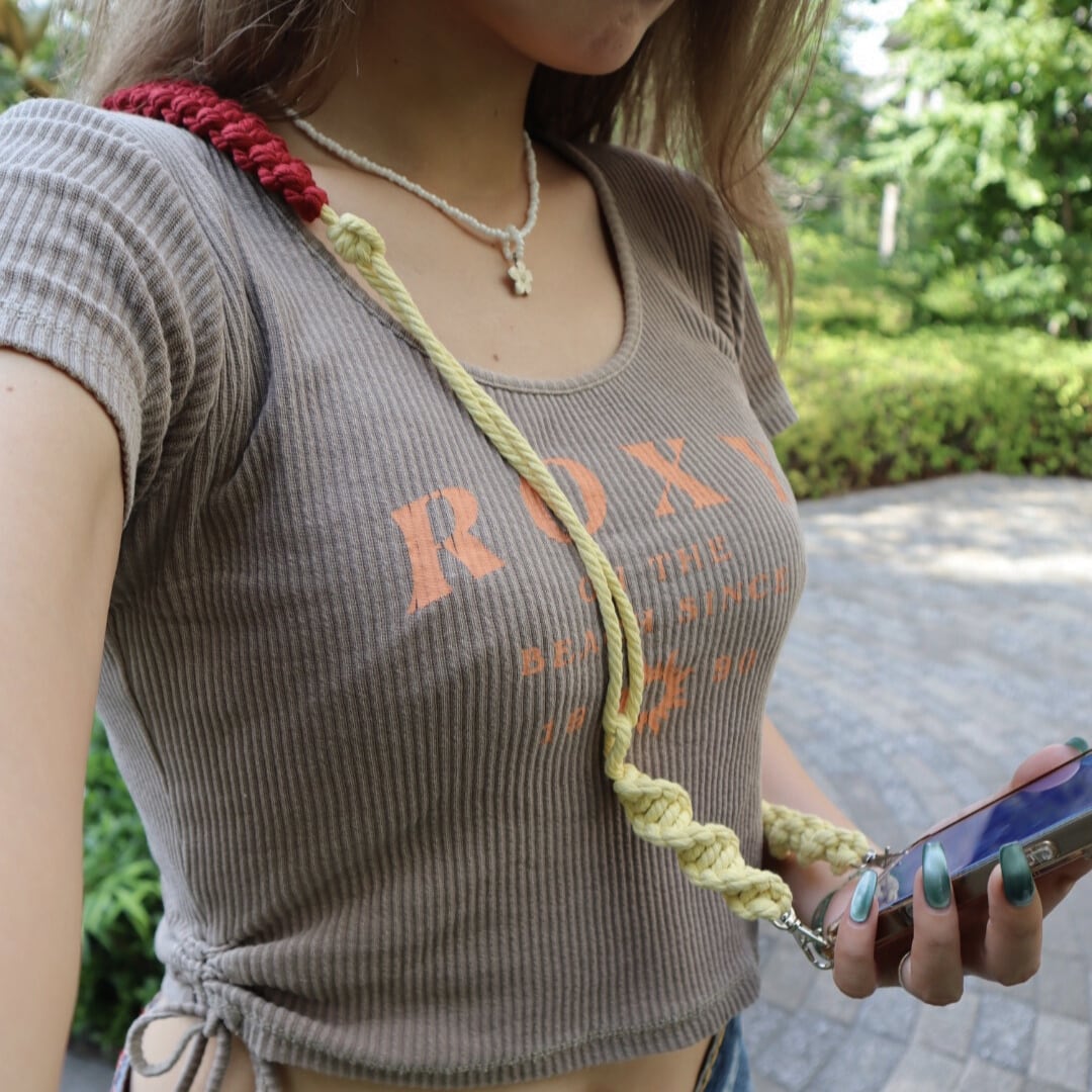 スマホショルダー(太紐ver)[ライトイエロー×レッド]