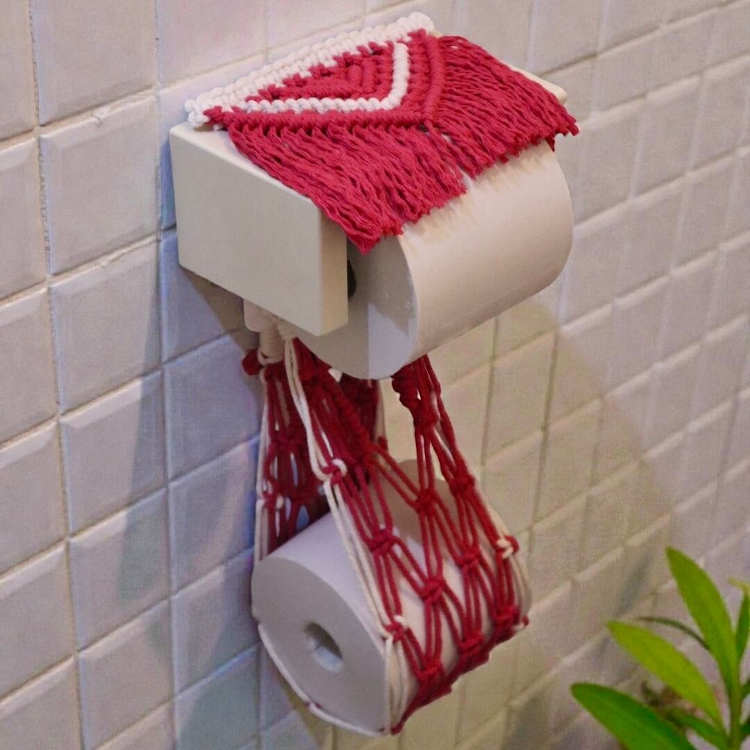トイレットペーパーホルダーカバー(ローズレッド×ホワイト)