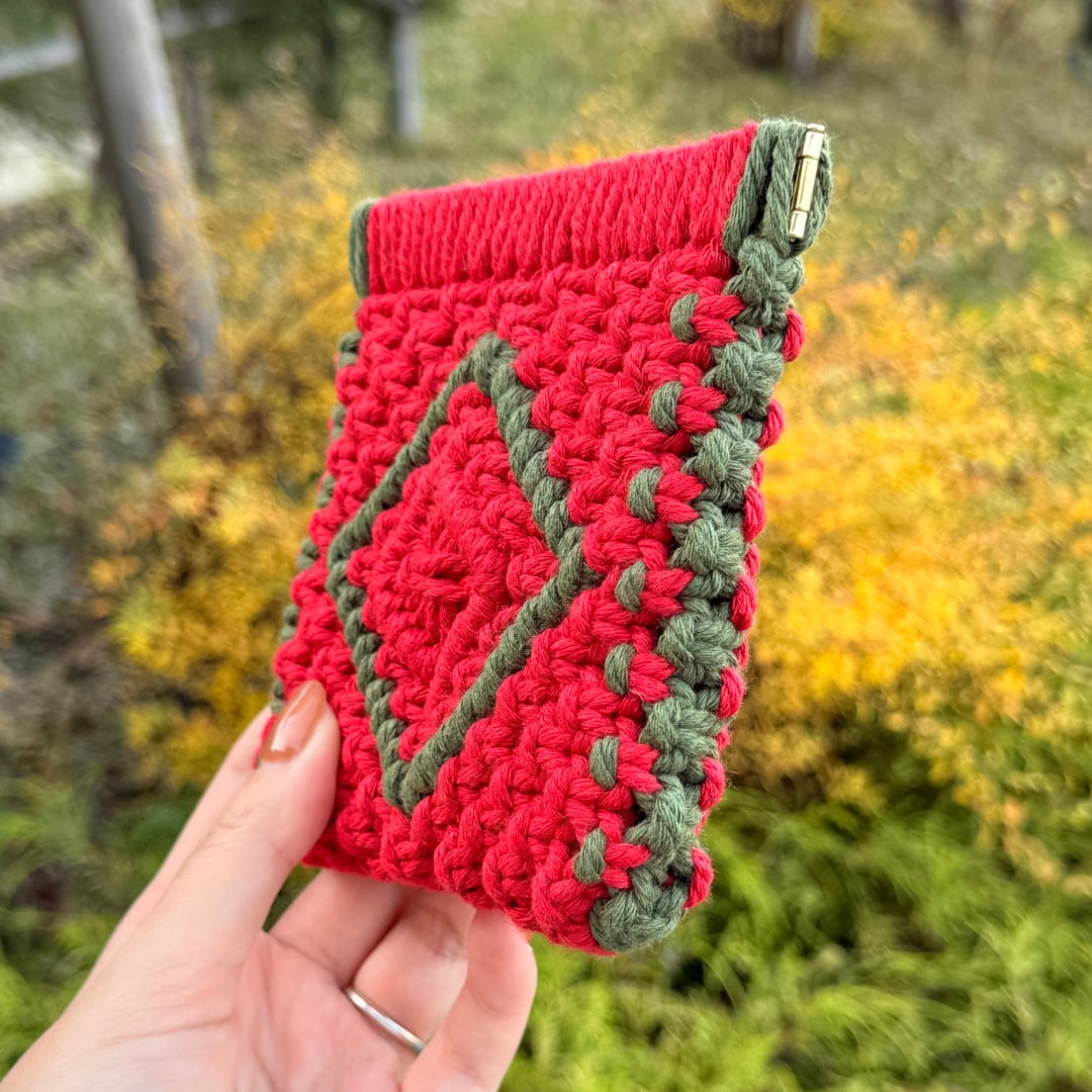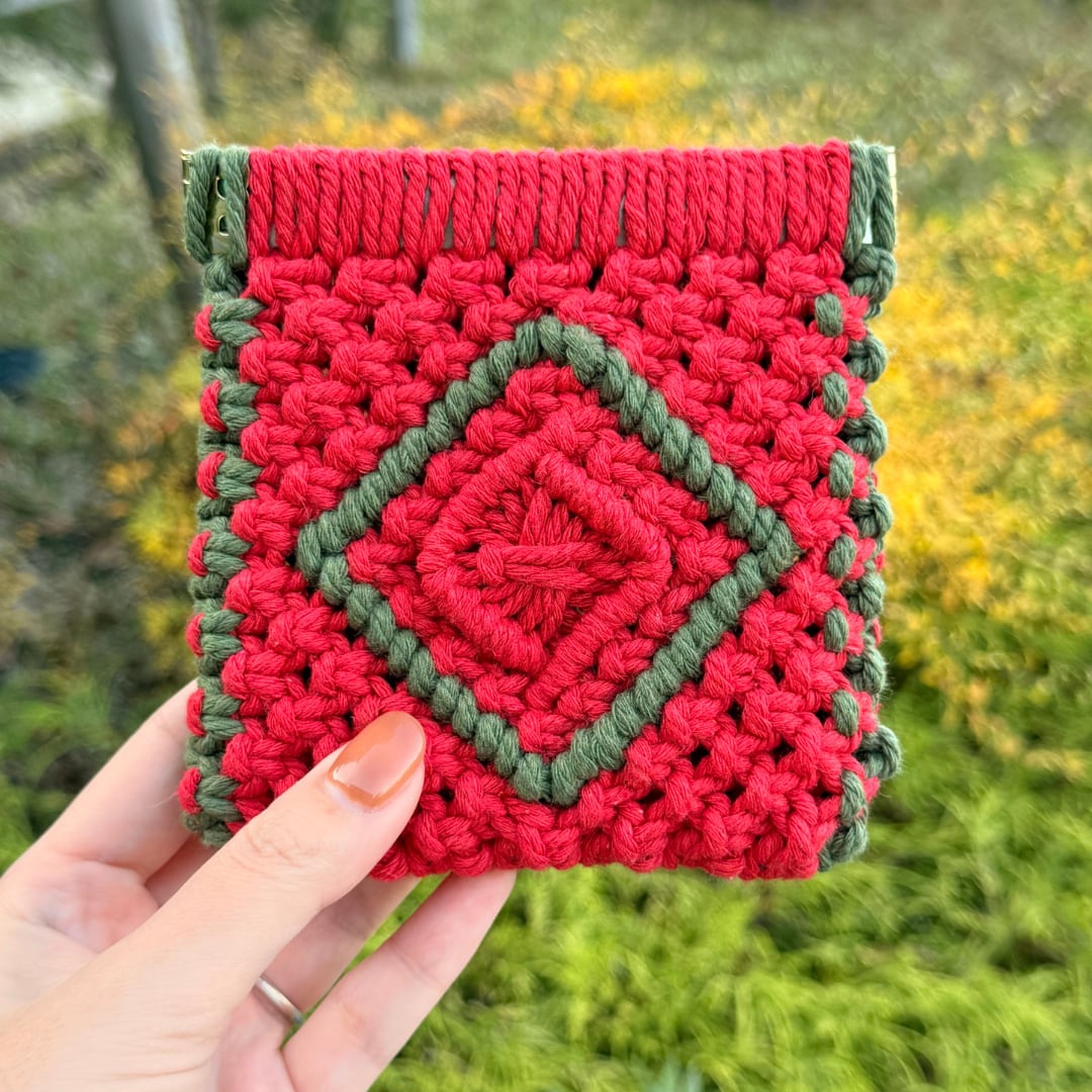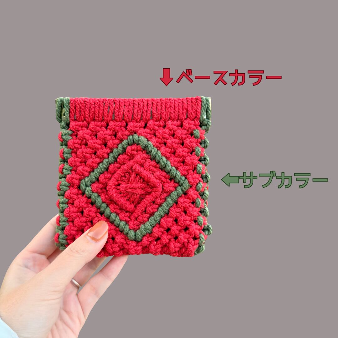 スクエアバネ口ポーチ(レッド×アーミーグリーン)