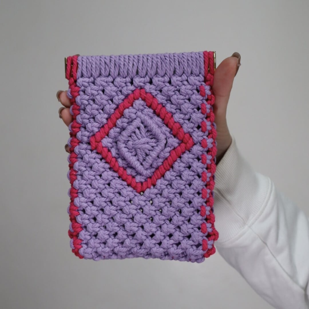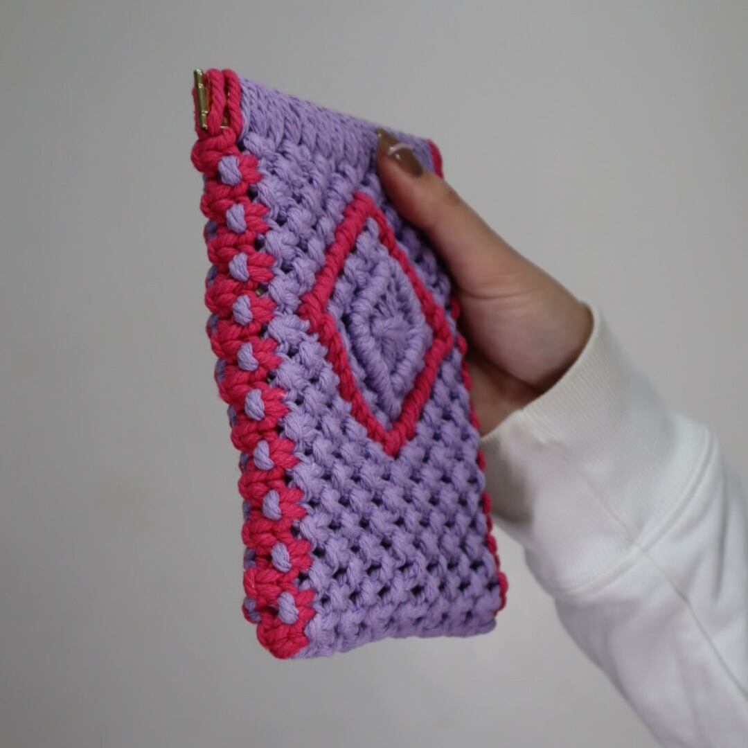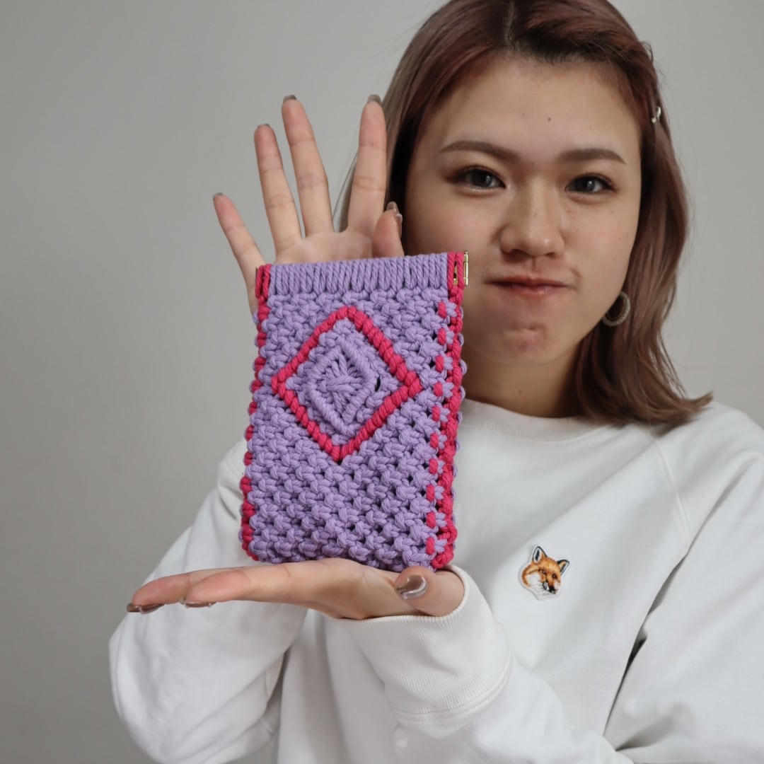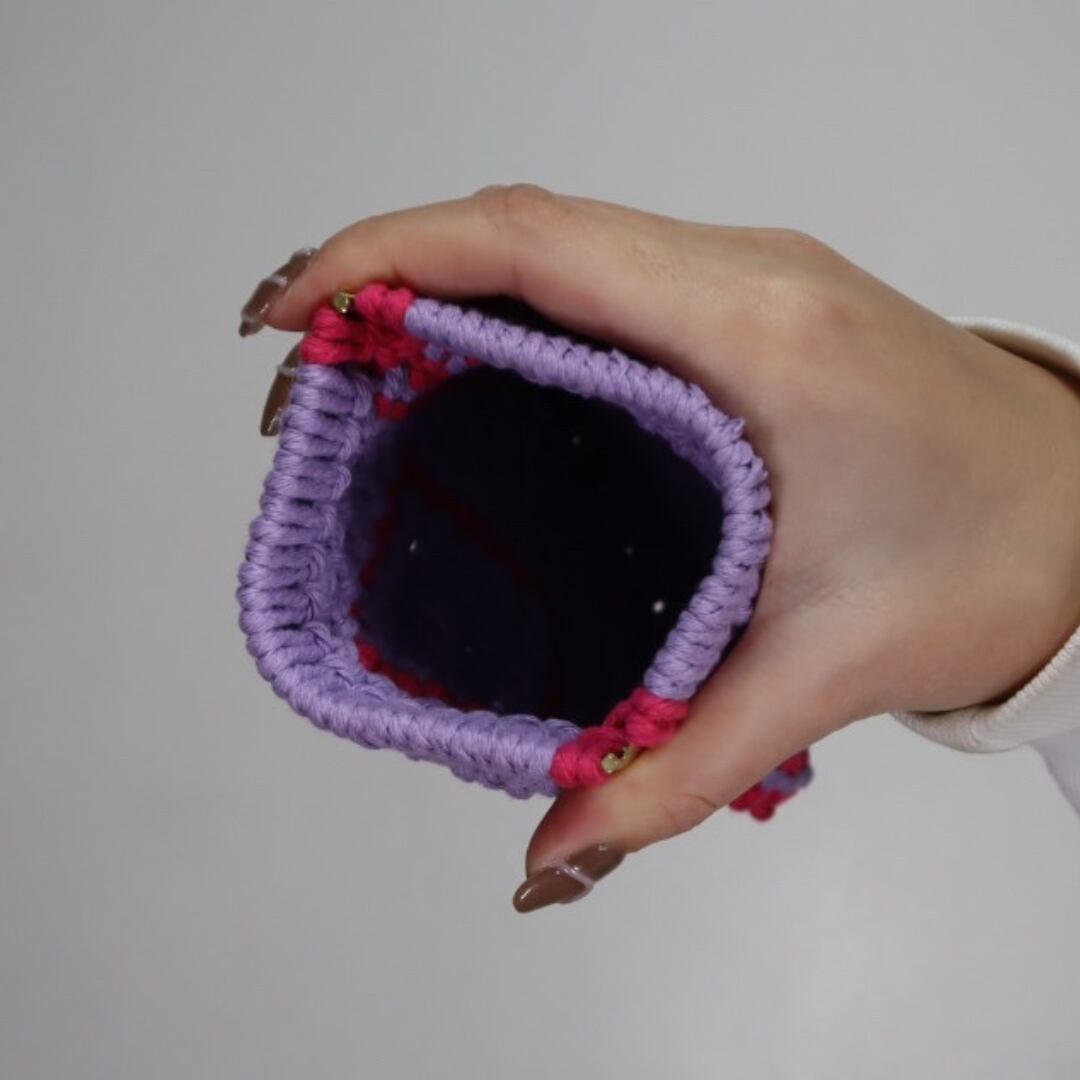 縦長バネ口ポーチ(パープル×ローズレッド)
