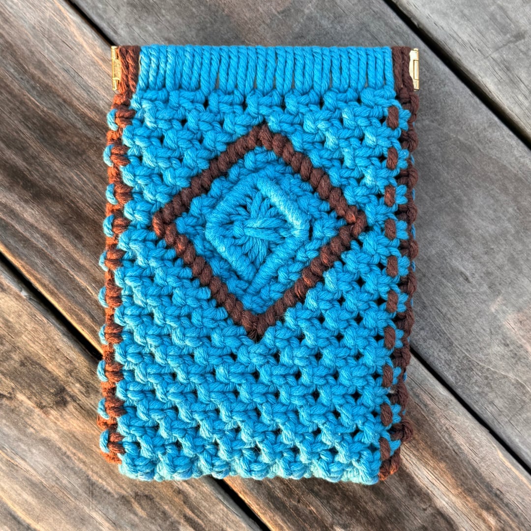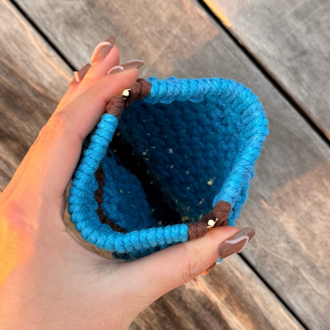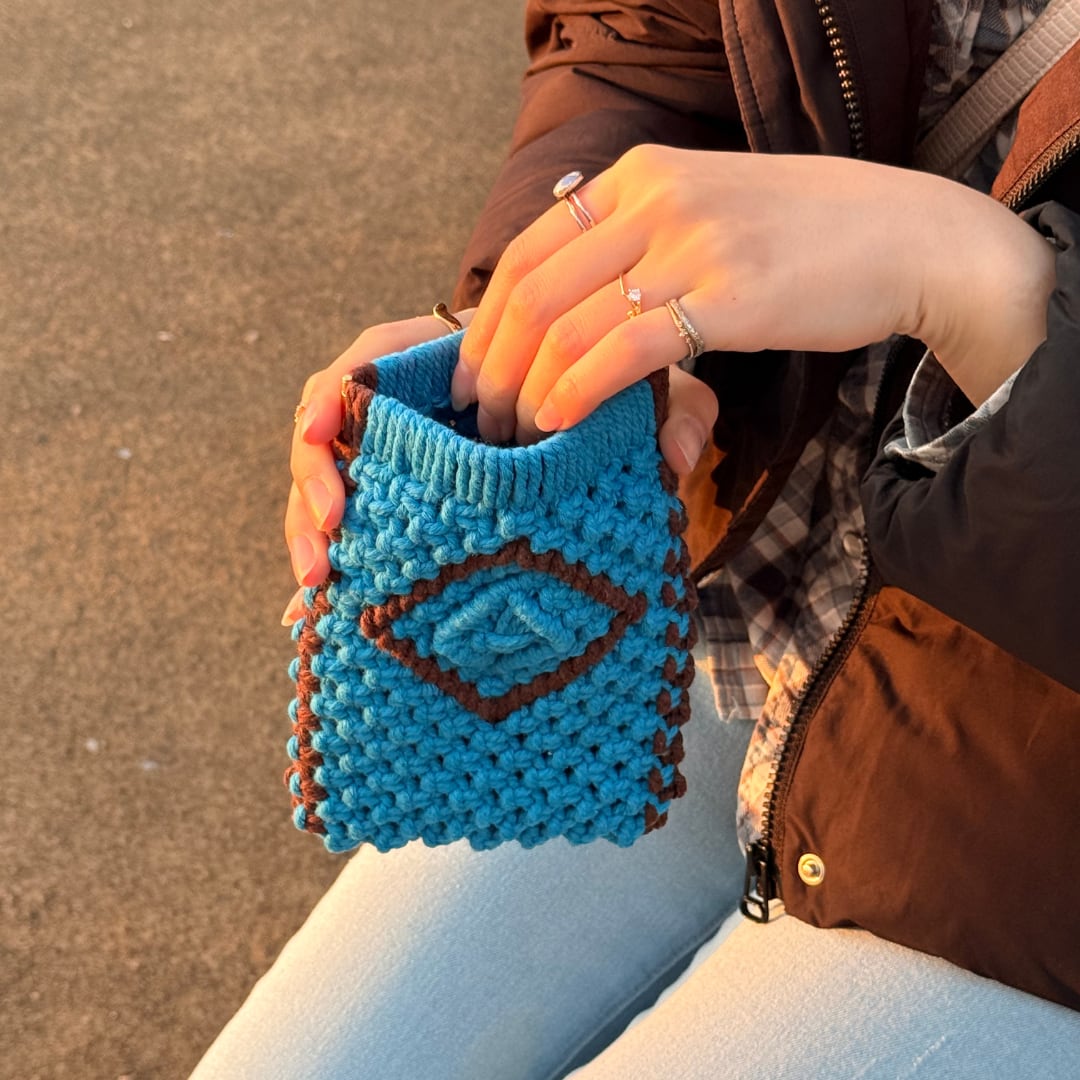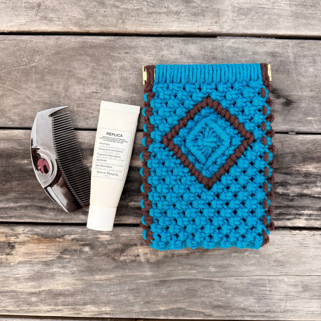 縦長バネ口ポーチ(レイクブルー×ブラウン)