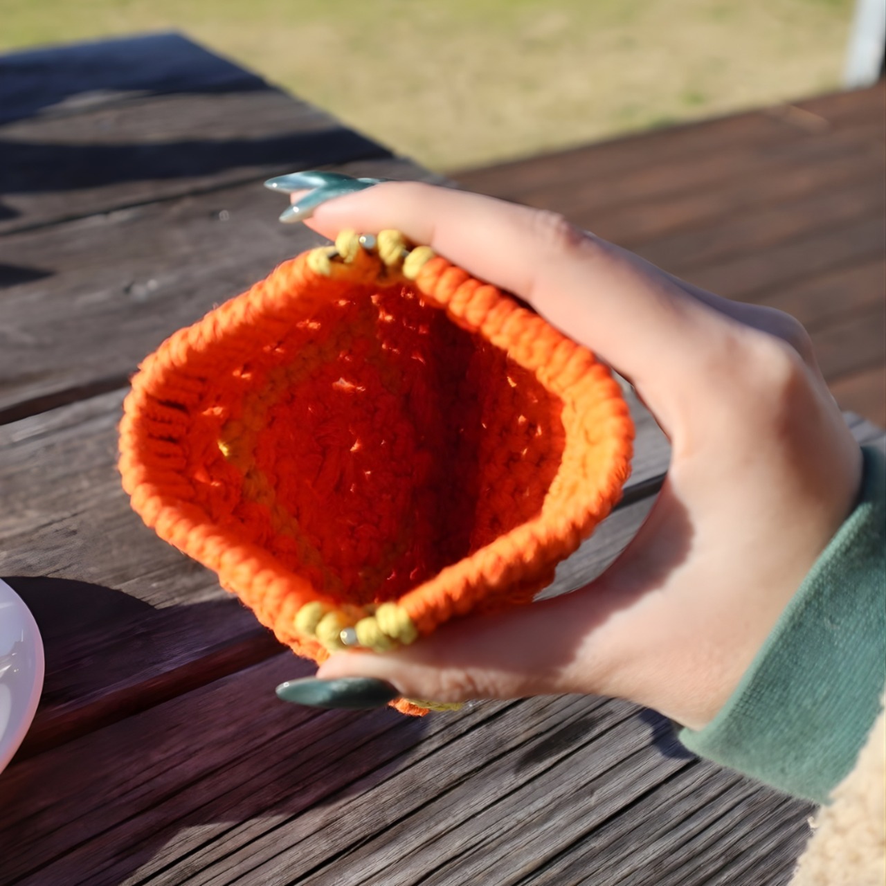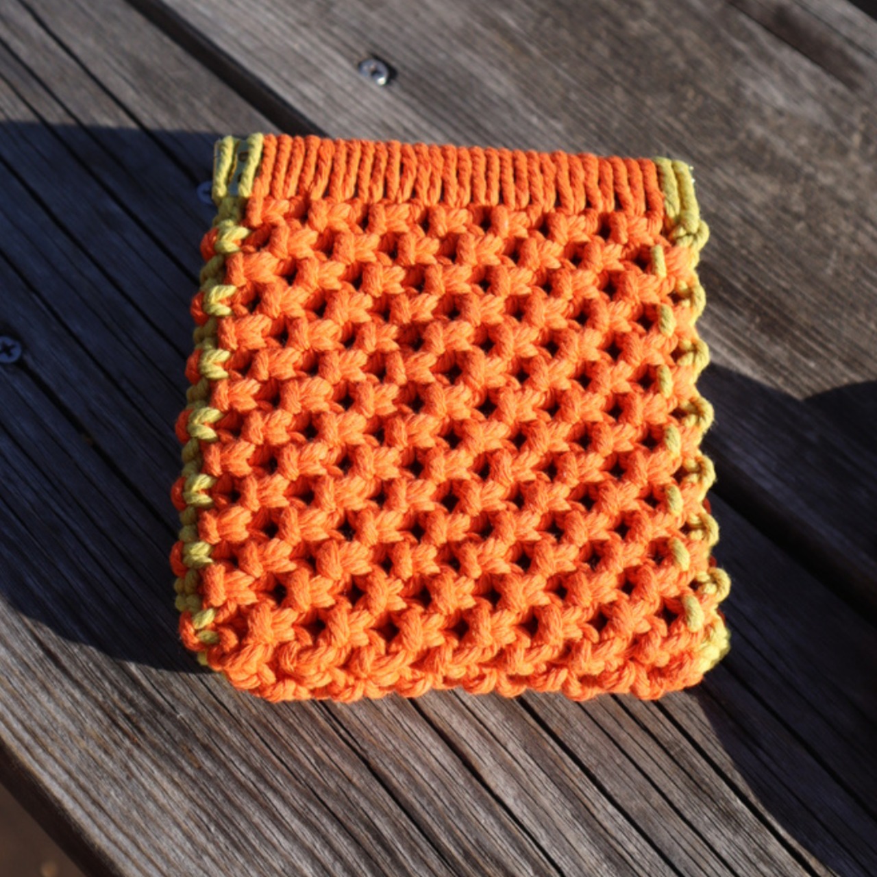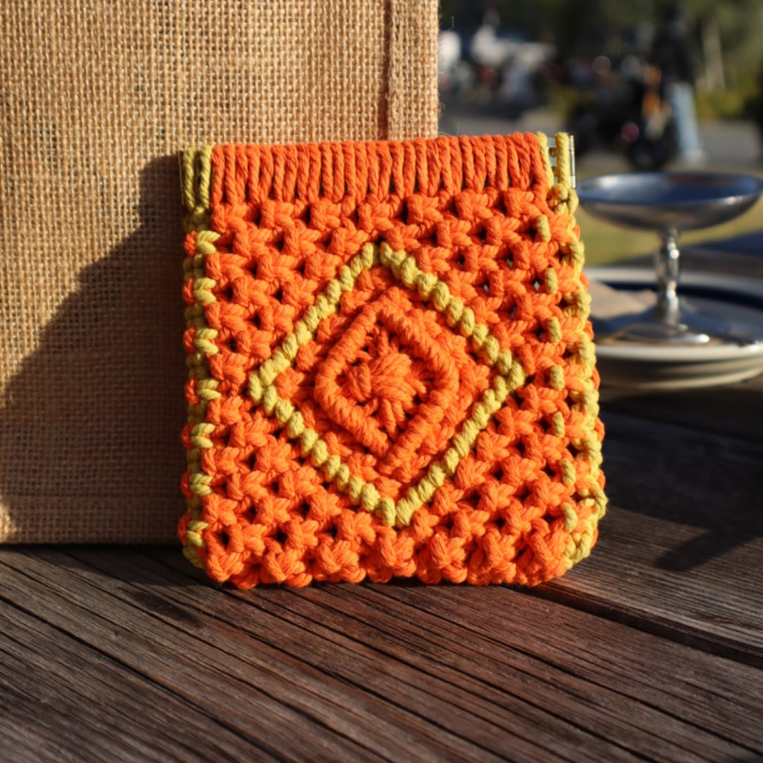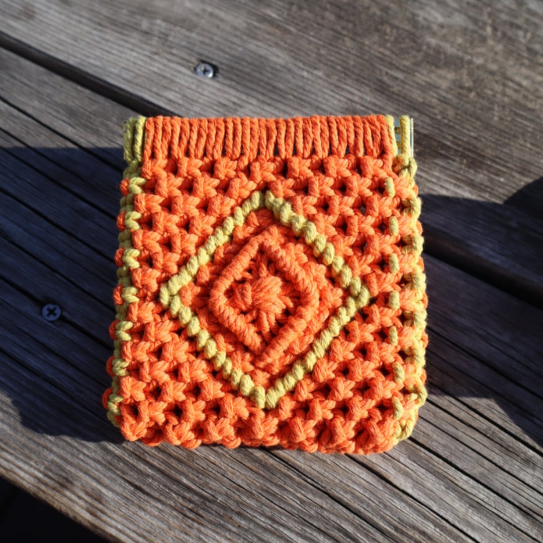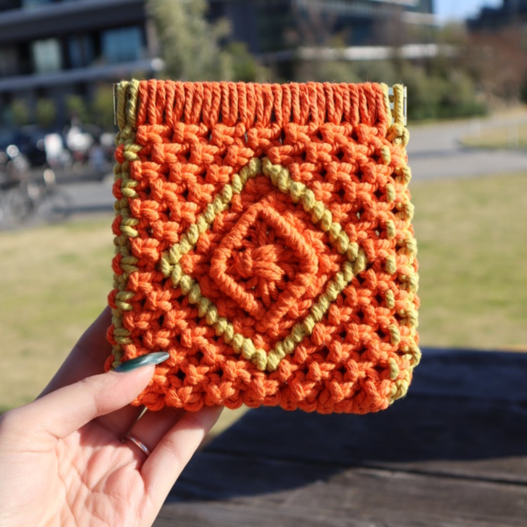 スクエアバネ口ポーチ(オレンジ×レモンイエロー)