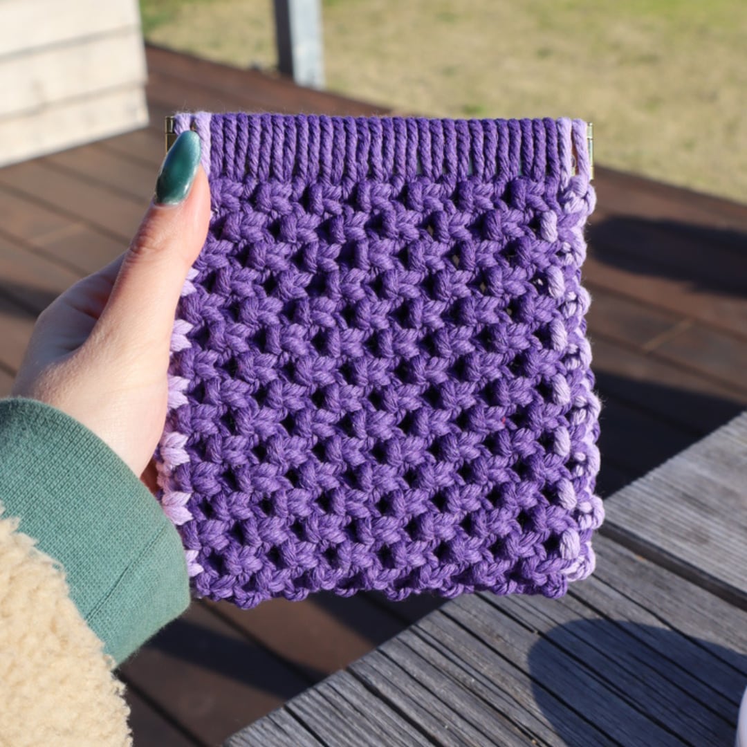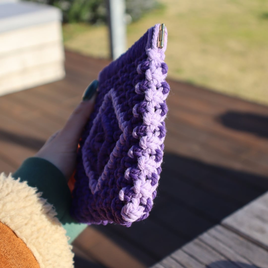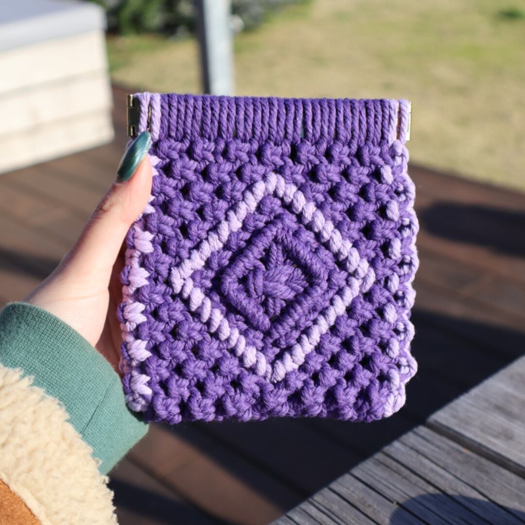 スクエアバネ口ポーチ(ディープパープル×パープル)