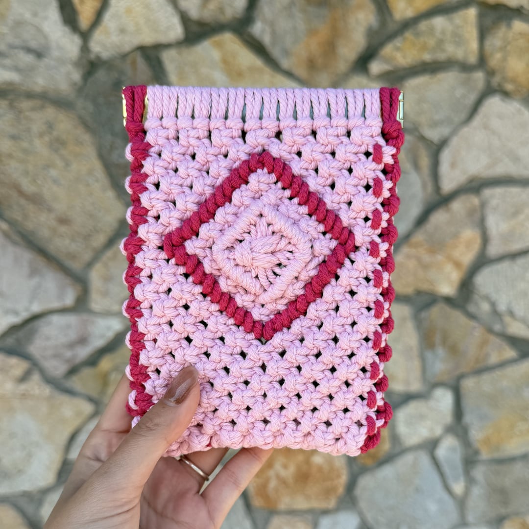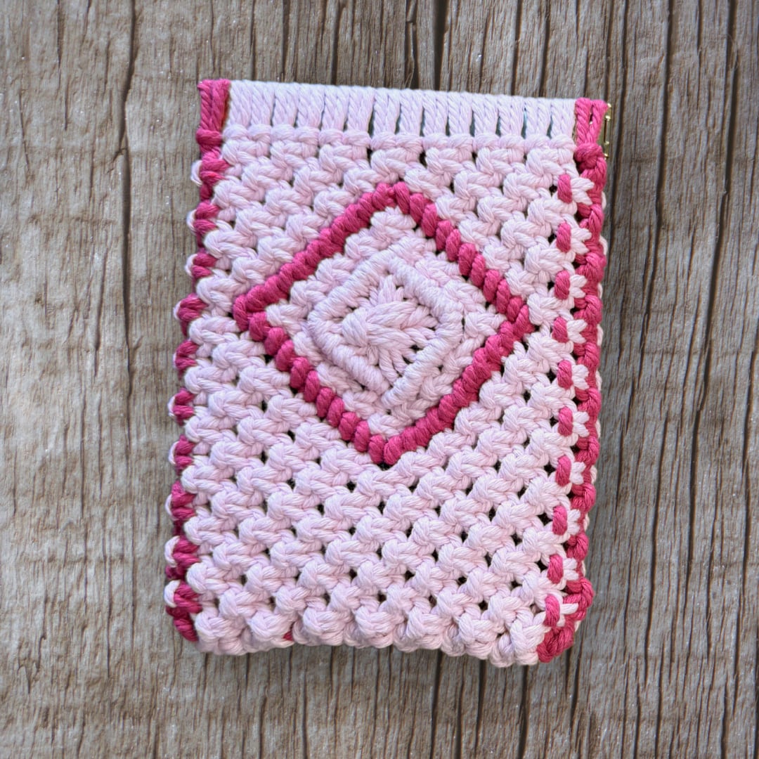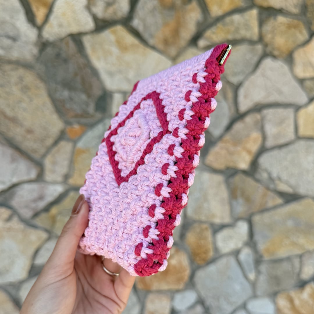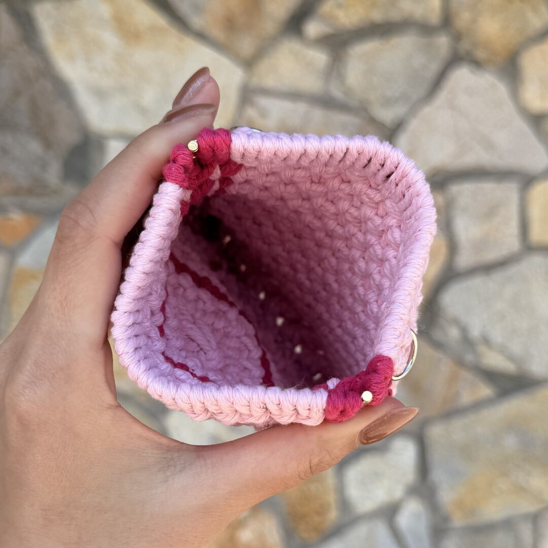 縦長バネ口ポーチ(ピンク×ローズレッド)