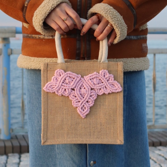 マクラメジュートバッグ(ピンク)